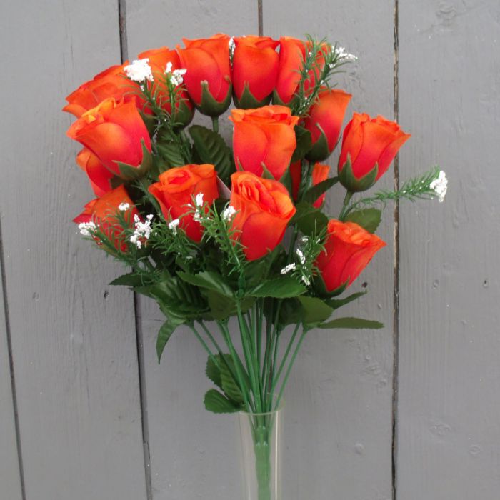Artificial 45cm Orange Rose Bush - 18 Heads