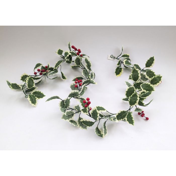 A good quality artificial holly garland with clusters of red berries.