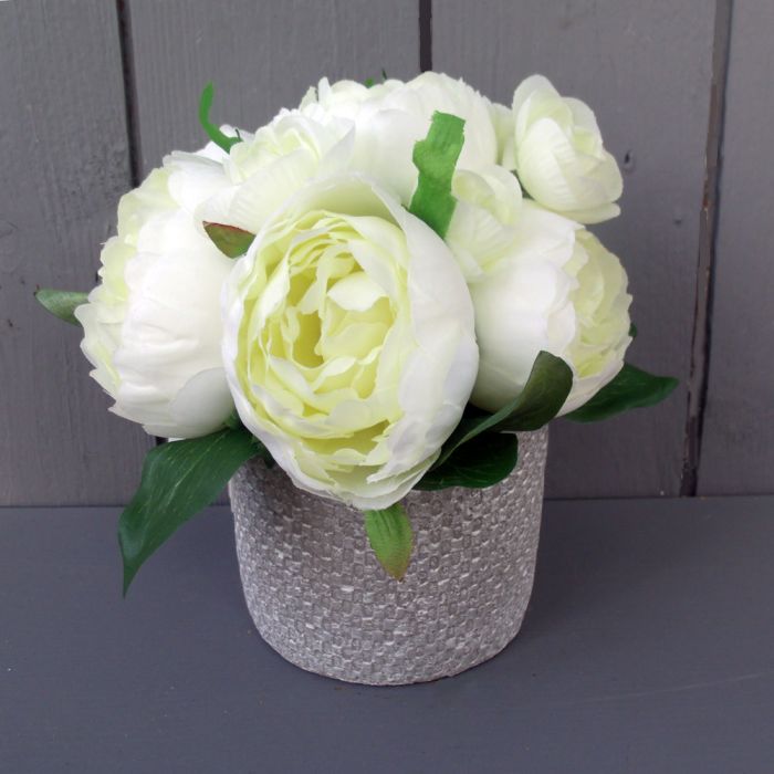 Artificial 18cm Ivory Peonies in a Grey Pot