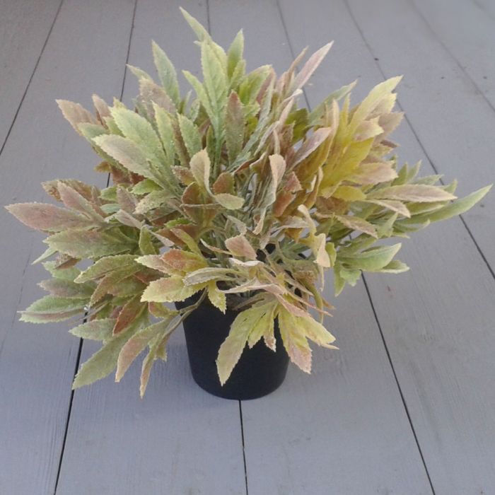 A life-like artificial sage herb plant with leaves that not only look real with a mix of shades of green red but also have a real touch feel.