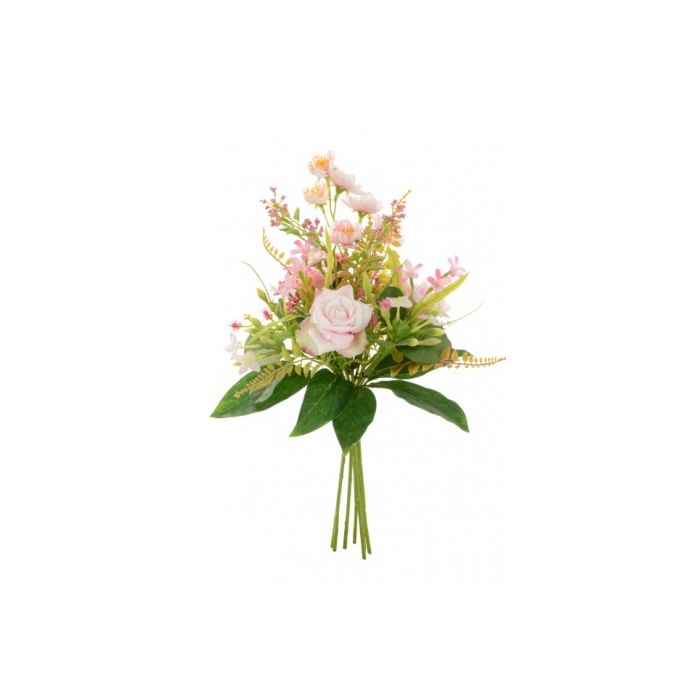 A mixed floral bunch of good quality flowers with pale pink roses with pink blossom.