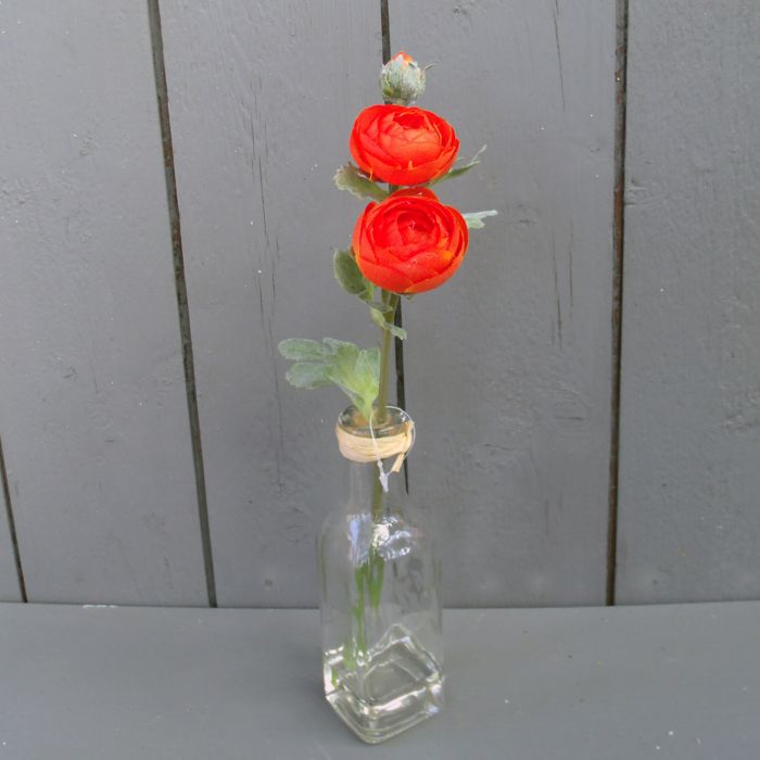 Artificial 31cm Orange Ranunculus in a Glass Bottle