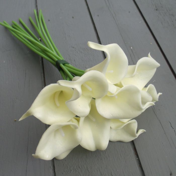 A bunch of 10 artificial calla lilies.