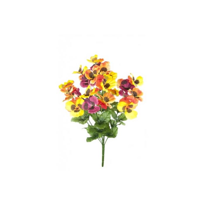 Artificial 48cm Orange, Yellow and Pink Pansy Bush