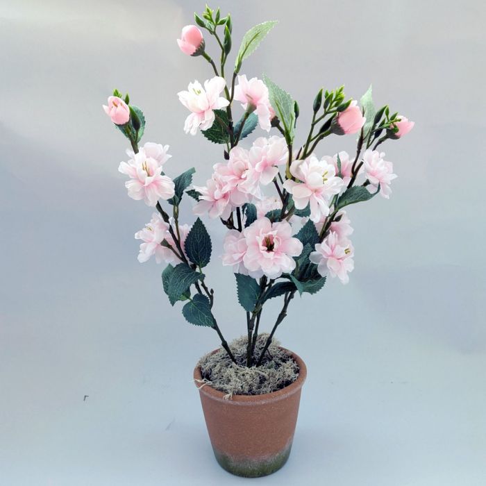 Artificial pale pink cherry blossom in a pot, makes a great spring time table decoratioin.