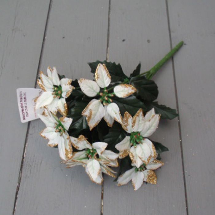 Artificial Cream Poinsettia Bush with Gold Glitter