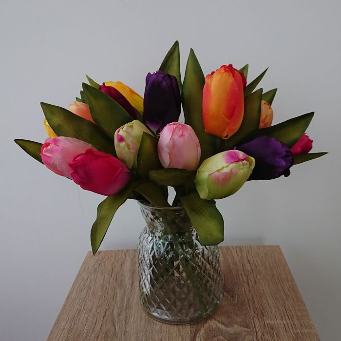 Artificial 29cm Mixed Tulips in A Glass Vase