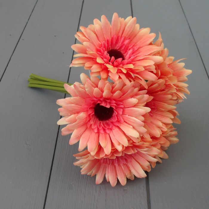 26cm Dark Peach Artificial Gerbera Bunch - 7 Stems