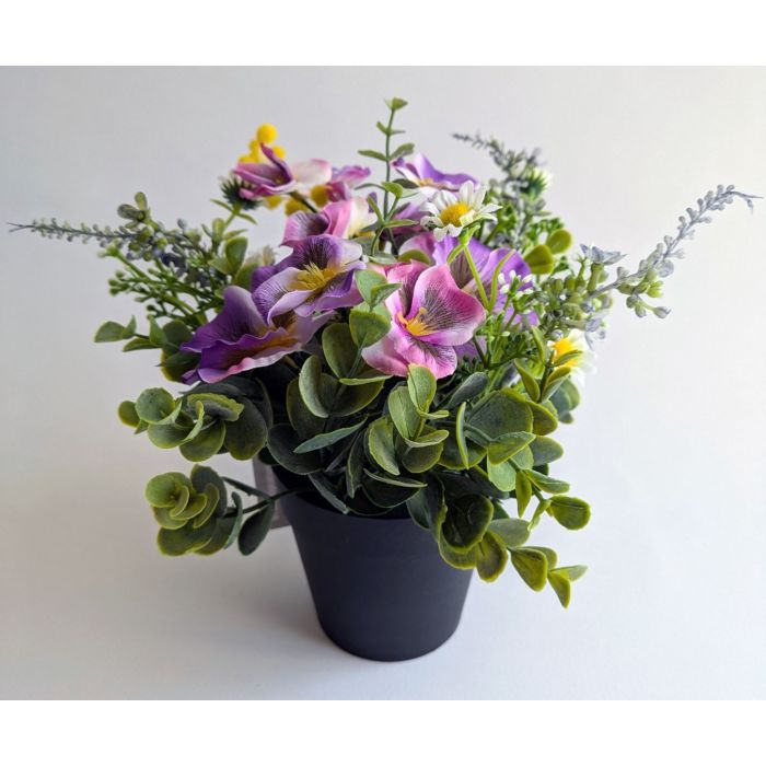 Artificial Pink / Purple Pansy and Foliage in Pot