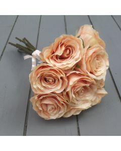 Beautiful peach colour artificial flowers, bunches of roses, single stem roses, gerberas and peonies.