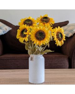 With their glowing yellow flower heads, sunflowers are symbol of summer. Here you will find some very real looking artificial sunflowers that will give the glow of summer for longer. Browse our range of bunches, bunches and single sunflower stems.