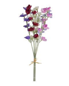 Sweet peas are a summer flower which are usually found with pink, lilac or purple colours which you will find here. Fresh sweet pea flowers often fall pray to insects, this isn't an issue you will have with artificial sweet peas.