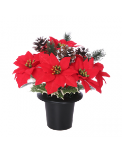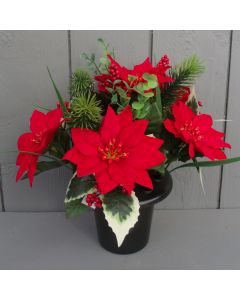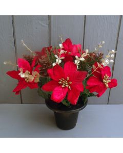 We have a range of Christmas Crem pots perfect to brighten up any grave during the festive season. The grave pots are full of Christmas flowers including poinsettias, mistletoe, carnations and roses. The flowers come in a range of different pots; weighted, with and without lids. These pots are perfect for our "Memorial Grave Vase - In Loving Memory".